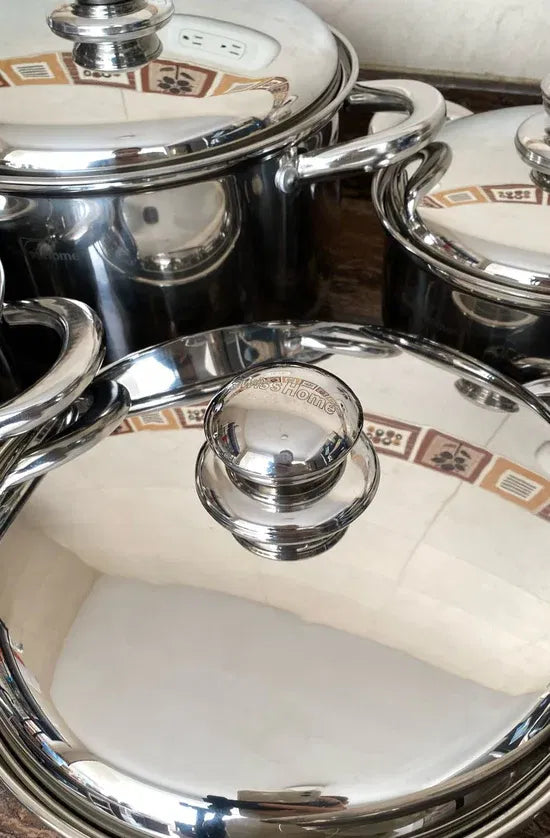 El conjunto está fabricado en acero inoxidable de grado quirúrgico, un material premium de alta calidad, resistente a la corrosión, duradero y seguro para el contacto con alimentos. Garantiza una cocción uniforme y preserva los nutrientes de los ingredientes, ideal para el uso diario en la cocina.